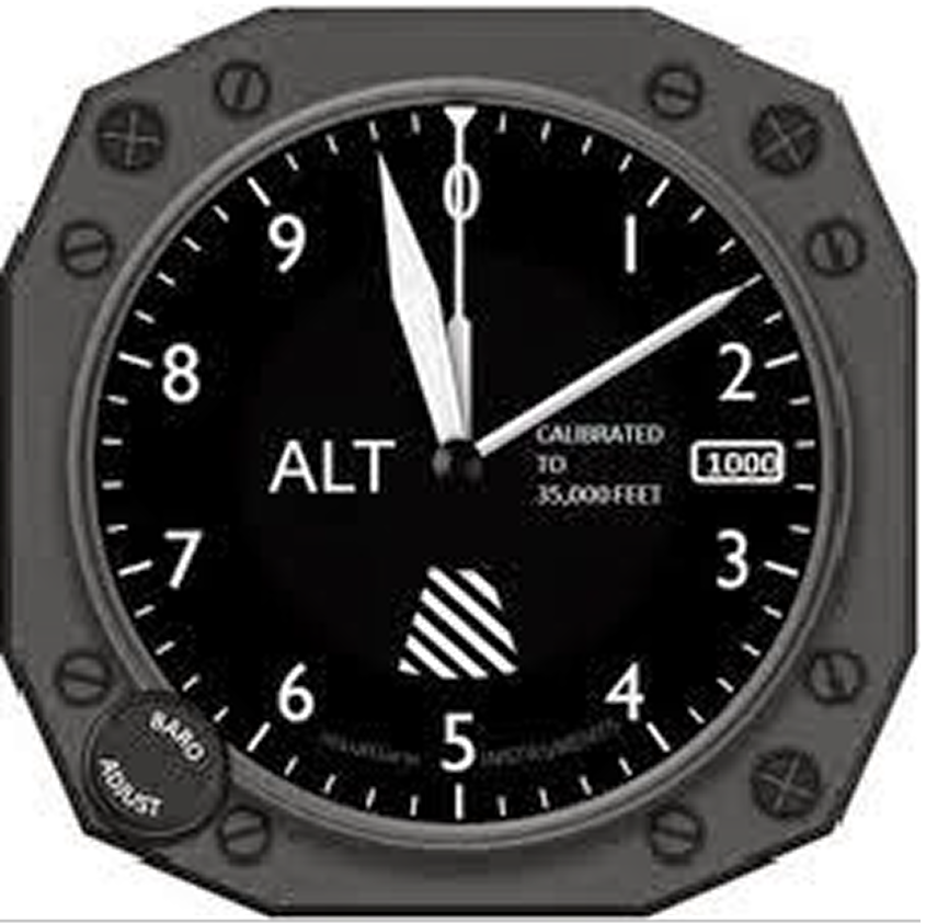 O Altímetro é um instrumento de bordo, que tem o seu processo de funcionamento baseado em um barômetro aneróide calibrado, com o objetivo de proporcionar aos pilotos as informações de altitude, utilizando a atmosfera padrão como referência, ou seja, indica altitudes em relação ao nível médio do mar (NMM).