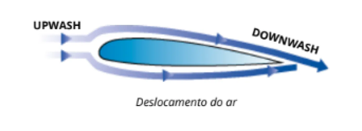 Ou seja, o ar que é deslocado para baixo pela asa, de acordo com a terceira lei de Newton, terá como reação empurrá-la para cima, produzindo sustentação.